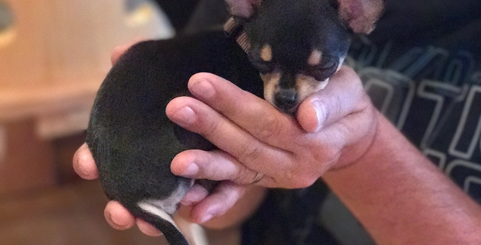 Es ging also zu Fonsi, seines Zeichen Chihuahua und 12Wochen alt, na das ist doch mal ein Kontrastprogramm.